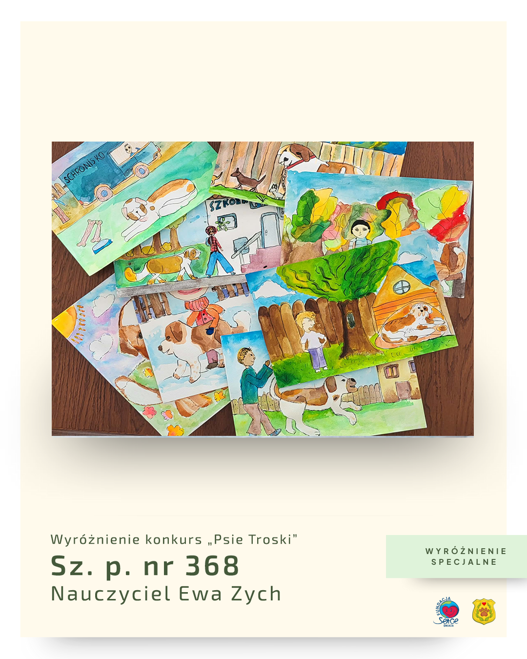 Waszym zadaniem jest stworzenie ilustracji format A4 inspirowanej lekturą „Psie troski”, która edukuje o odpowiedzialności i pomocy bezdomnym zwierzętom.